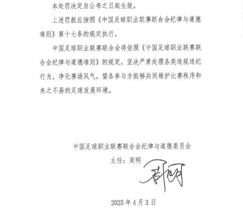 体育资讯04月03日报道宣称 中足联官宣罚单,海牛球员林创益停赛1场,罚款1万元。