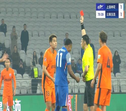 体育资讯04月03日报道宣称 中超第4轮,上海申花vs云南玉昆,比赛第79分钟,弋腾两黄变一红被罚下场。