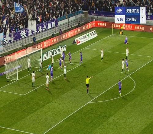 比赛第77分钟,哈达斯右路传中,基莱斯门前乱战梅开二度,津门虎2-1反超国安。值得一提的是,这也是天津津门虎顶级联赛1000球。