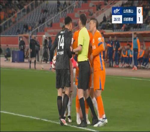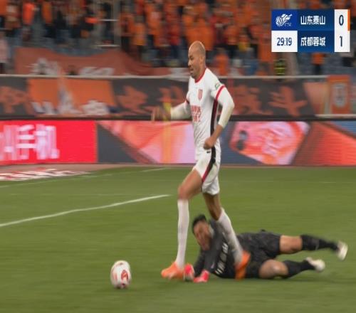 体育资讯04月02日报道宣称 中超第4轮,山东泰山vs成都蓉城。比赛第29分钟,费利佩疑似被出击的王大雷放倒,裁判没有吹罚点球,也没有吹罚费利佩假摔。费利佩非常不满摊手申诉要点球。