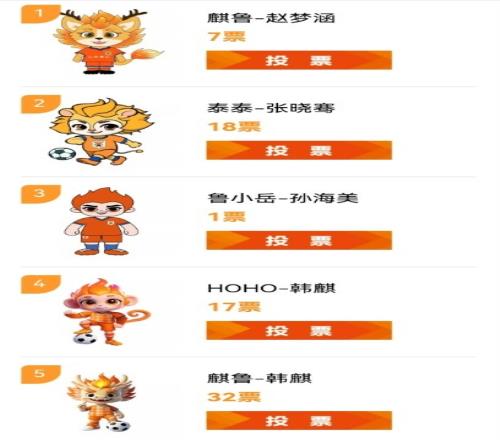 山东泰山俱乐部官方征集吉祥物,共20幅作品进入网络投票