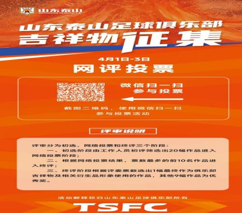 山东泰山俱乐部官方发布吉祥物征集活动,共有20幅作品进入网络投票阶段。