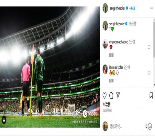 在中超第3轮北京国安主场1-1战平成都蓉城的比赛中,归化国脚塞尔吉尼奥首发出战迎来个人国安首秀,他赛后晒出自己罚角球时的照片,同时配文:7
