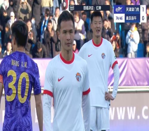 比赛第71分钟,林创益亮鞋底飞铲对手支撑腿,裁判先是出示黄牌,后经VAR改判将其直红罚下,海牛仅剩9人应战。此前,在上半场第42分钟,金洋洋已经因铲球犯规被直红罚下。