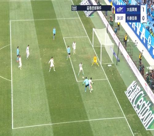 19岁朱鹏宇中超处子球!大连英博10领先长春亚泰,马莱莱助攻