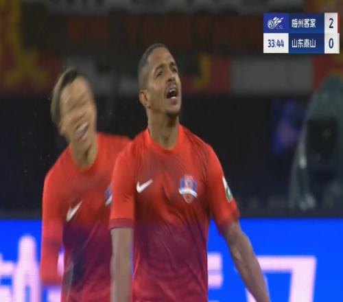 第34分钟,梅州客家再入一球,罗德里格禁区内面对多位泰山球员闪开射门角度,低射破门完成传射,梅州客家3-0领先山东泰山。↓