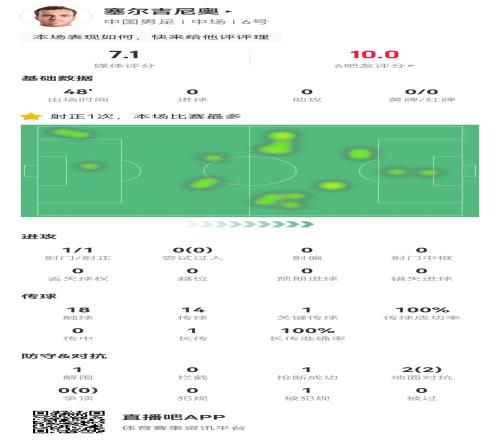 而在对阵澳大利亚,塞尔吉尼奥中场回来后替补登场,并贡献了国足全场唯一一脚射正,他的首秀能打几分?