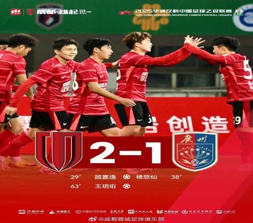 今晚,成都蓉城B队在双流体育中心打响中乙首战,主场对阵广州蒲公英德桦绿建,最终以2-1战胜对手!