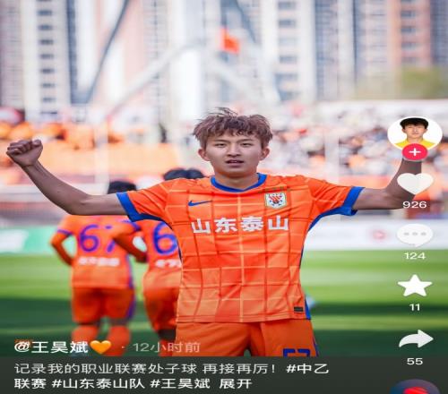 体育资讯3月23日报道宣称 泰山B队球员王昊斌更新社媒,记录了自己职业生涯的处子进球。