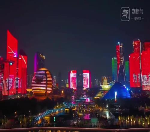 主场氛围拉满!杭州全城掀起“中国红”灯光秀,为国足助威