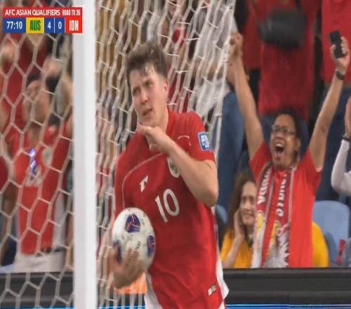 体育资讯03月20日报道宣称 世预赛亚洲区第三阶段C组第7轮,澳大利亚vs印尼,比赛第78分钟,澳大利亚后防失误,印尼归化前锋罗梅尼进球,打入印尼国家队生涯处子球,印尼仍1-4落后,克鲁伊维特场边不停鼓掌。