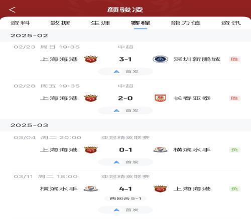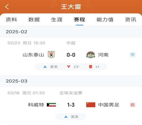 但2025赛季中超首轮泰山vs河南,王大雷出击踢倒对手染红,2月23日之后未参加正式比赛。而颜骏凌出战了中超+亚冠的所有比赛。