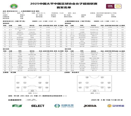 体育资讯3月15日报道宣称 本周末,女超联赛第3轮将继续进行,武汉车谷江大将在今天下午15:00主场迎战上海农商银行。赛前公布的出场名单中,武汉女足的王霜继续位列替补。