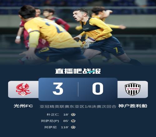 体育资讯3月13日报道宣称 亚冠精英联赛1/8决赛次回合,光州FC在首回合客场两球落败的情况下,主场完成逆转,以3-0的比分击败神户胜利船,晋级下一阶段。