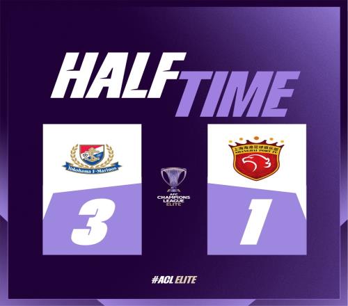 伤停补时4分钟。上半场比赛结束,上海海港1-3横滨水手。