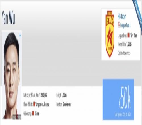 体育资讯3月7日报道宣称 根据德国转会市场网站信息显示,36岁的门将吴龑已经复出加盟了中乙湖北青年星。