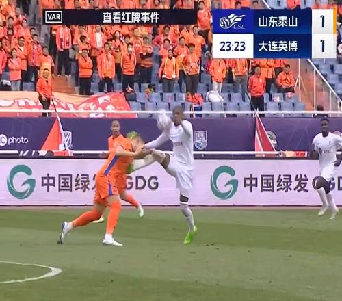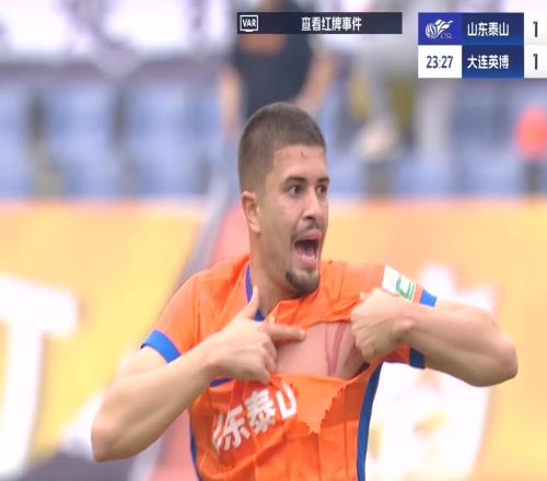 体育资讯02月28日报道宣称 泰山vs大连比赛第25分钟,卡兰加蹬踏卡扎尔胸部,后者球衣被蹬烂+拉出血痕!