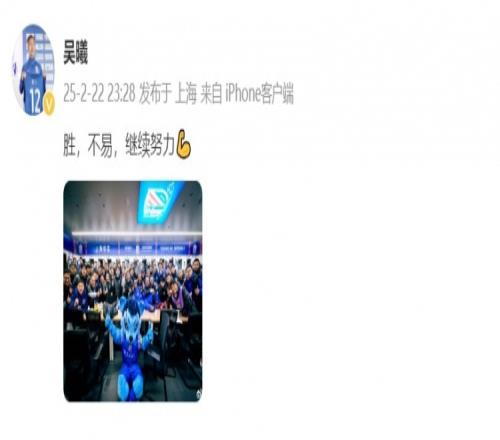 体育资讯2月22日报道宣称 中超联赛首轮,上海申花主场2-1绝杀长春亚泰。赛后,吴曦晒出全队在更衣室的大合照,并写道:胜,不易,继续努力