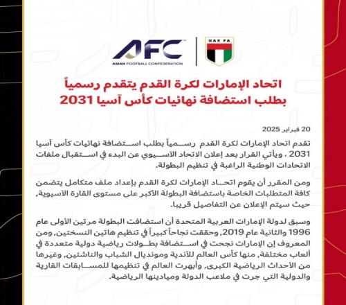 体育资讯2月21日报道宣称 阿联酋足协官方宣布,已经正式提交了申办2031年亚洲杯的申请。此前,印尼、韩国、科威特已经表态将申办该届赛事。