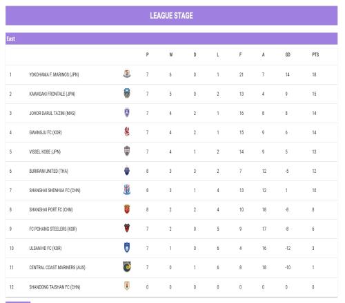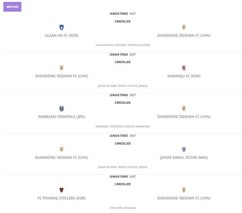 体育资讯02月20日报道宣称 亚足联官方更新了亚冠积分榜和晋级球队,最新积分榜中,山东泰山战绩清零!