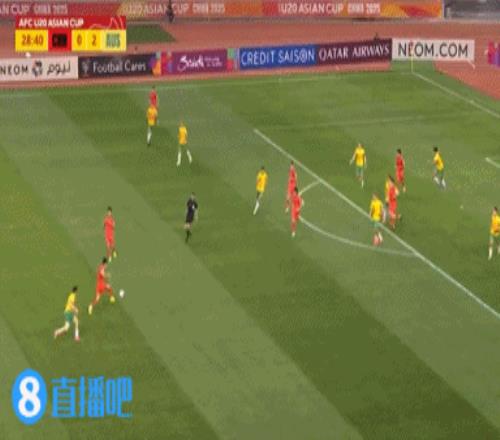 对阵澳大利亚U20精彩凌空抽射↓
