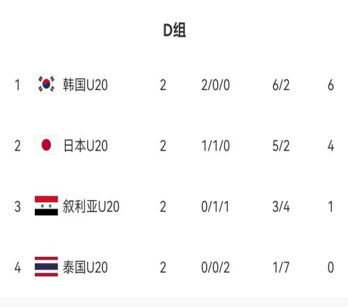 U20亚洲杯D组出线形势:日本末轮不败即晋级,叙利亚需大胜泰国