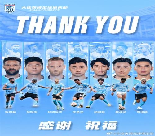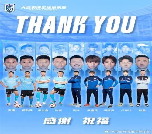 大连英博足球俱乐部衷心感谢所有球员的辛勤付出和不懈努力!祝愿大家未来一切顺利!