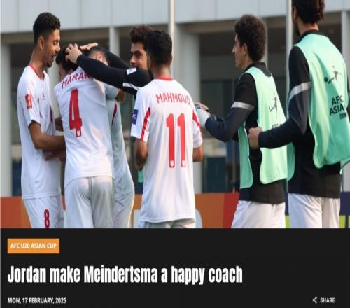 体育资讯2月17日报道宣称 U20亚洲杯小组赛第二轮,约旦U20国家队2-1击败朝鲜U20国家队。赛后,在接受“亚足联官网”采访时,约旦队主帅迈因德茨马谈到了自己的感受。