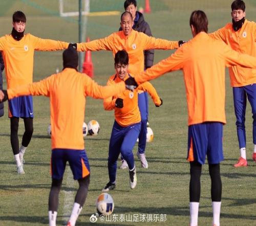 2月10日下午,山东泰山队在基地内进行赛前官方训练,积极备战明天主场与韩国光州FC的亚冠精英联赛。