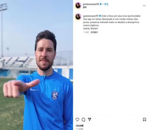 体育资讯2月10日报道宣称 正式加盟武汉三镇后,巴西边锋古斯塔沃-绍尔在社媒晒出了官宣视频并发表了自己的加盟感言。