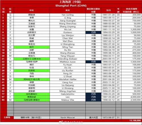 朱艺对报名名单进行注解:1、绿色底纹代表对比第2报名窗口,此次报名窗口新增加的球员。2、亚冠精英联赛规定不晚于3月31日前,只要名单不满35人上限,仍允许补报2月4日后新转入的球员。3、由于赛制不同,亚冠精英联赛球衣号码、报名人员不一定与中超完全相同,请注意区分。4、该名单将生效至本赛季亚冠精英联赛结束。
