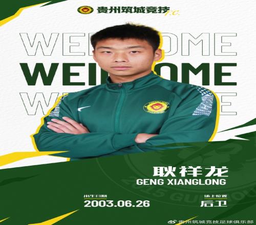 经与球员协商一致,耿祥龙正式加盟贵州筑城竞技足球俱乐部。
