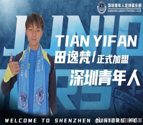 经与球员本人友好协商并达成一致,田逸梵正式加盟深圳青年人足球俱乐部。