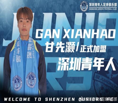 经与球员本人友好协商并达成一致,甘先灏正式加盟深圳青年人足球俱乐部。
