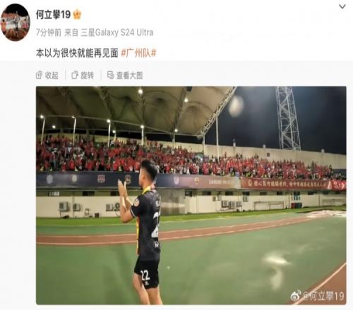 何立攀在社媒晒出了他最后一次向广州队球迷谢场的照片,同时还配文写道:“本以为很快就能再见面。”