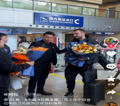 抵达昆明时,茨尔诺马科维奇收到了俱乐部工作人员送上的鲜花。
