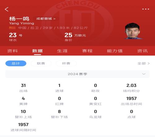 体育资讯获悉,成都蓉城中卫杨一鸣转投深圳新鹏城。