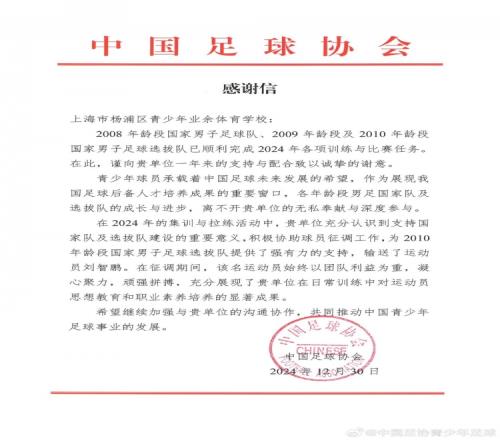 在2024年的集训与拉练活动中,各单位充分认识到支持国家队及选拔队建设的重要意义,积极协助球员征调工作,为各年龄段国家队及选拔队提供了强有力的支持,输送了大量潜力新星。希望未来继续加强与各单位的沟通协作,共同推动中国青少年足球事业的发展。