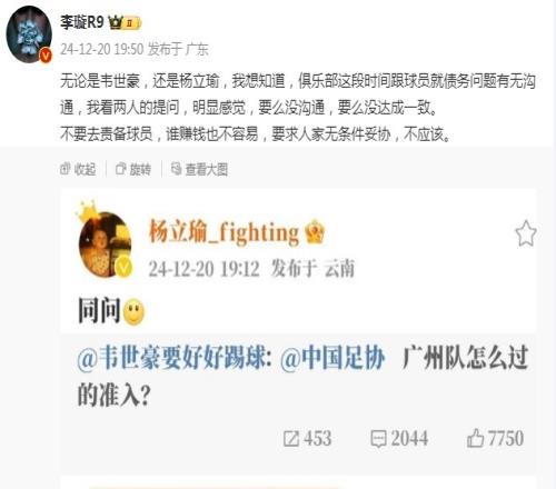 无论是韦世豪,还是杨立瑜,我想知道,俱乐部这段时间跟球员就债务问题有无沟通,我看两人的提问,明显感觉,要么没沟通,要么没达成一致。