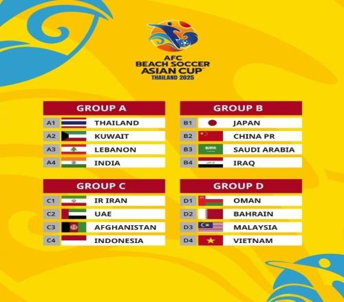 2025沙滩足球亚洲杯分组:中国与日本、沙特、伊拉克同在B组