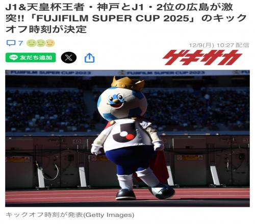 官方:2025日本超级杯将在明年2月8日进行,神户将对阵广岛