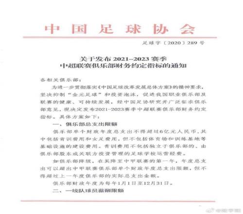 参照日韩俱乐部的标准,中国职业俱乐部新的财务约定指标也可以制定起来了。韩国俱乐部凭借不到1亿人民币的税前工资奖金投入,都可以亚冠夺冠参加世俱杯,中超标准给你翻个倍总可以吧?中超俱乐部如果投入上限可以控制在3到4亿,保级球队一年花不到1亿可以完成保级,让所有俱乐部真正开始重视自己的造血功能,重视很多相关的足球产业开发。投资足球俱乐部才会慢慢变成一个长期的、健康的、可持续发展的项目。