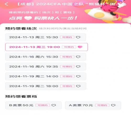 体育资讯11月8日报道宣称 售票网站上架熊猫杯门票,本次赛事的门票价格为50元-70元。