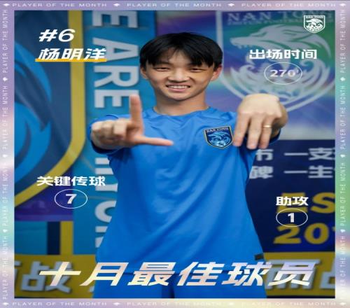 月度最佳票选结果出炉!最终杨明洋凭借稳定的发挥,赢得了更多球迷的支持与投票,最终成功当选南通支云十月最佳球员!一起来重温他的精彩表现吧
