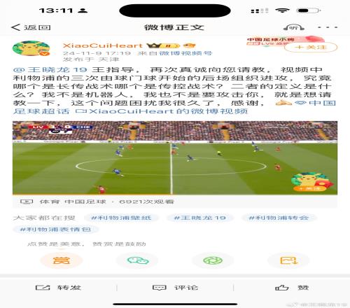 博主提问长传战术与传控战术区别,王晓龙千字长文回应