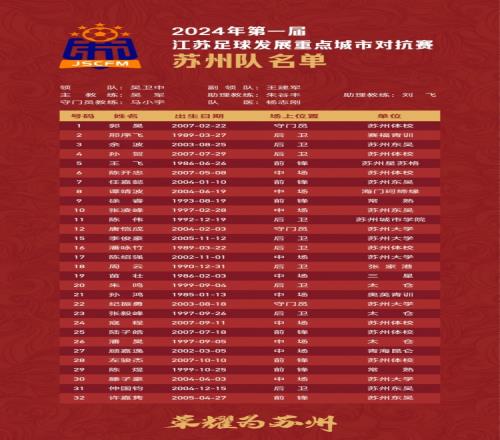 城市足球江苏足球发展重点城市对抗赛苏州队大名单公布!