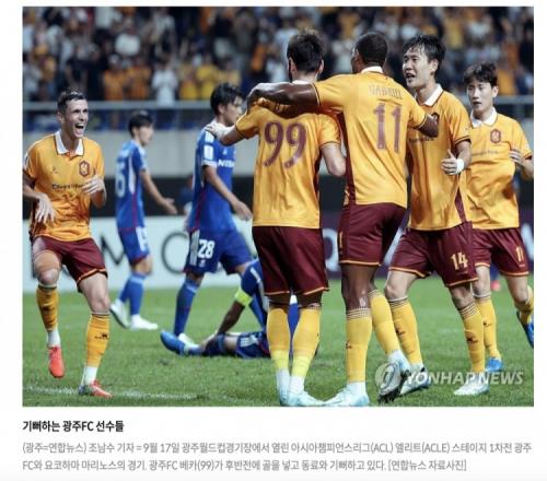 光州市方面于12日表示,27日将在光州世界杯体育场举办光州FC与上海申花的亚冠精英联赛第5轮比赛。本月8日,亚足联在光州世界杯体育场检验草坪之后,决定让光州世界杯体育场恢复办赛资格。