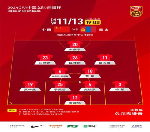 体育资讯11月13日报道宣称 北京时间今晚19点,2024年熊猫杯,U19国足vs蒙古,赛前官方公布首发阵容。