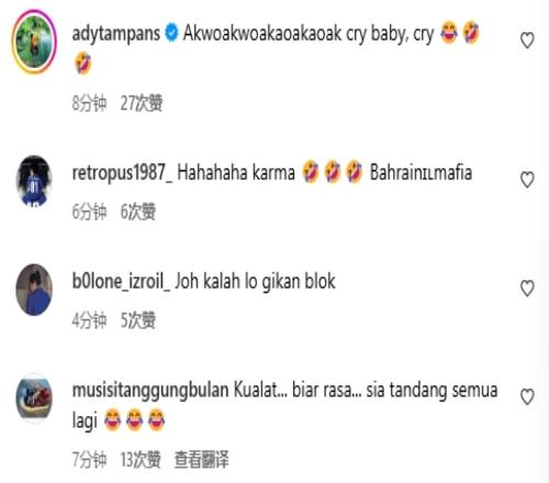 体育资讯11月15日报道宣称 世预赛18强赛C组第5轮,国足客场1-0绝杀巴林,赛后巴林球迷在足协官方账号下破防,同时本届世预赛结下梁子的印尼球迷也在刷屏嘲讽。