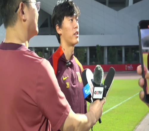体育资讯11月15日报道宣称 国足今天下午抵达厦门开展首练,队员胡荷韬接受场边采访。